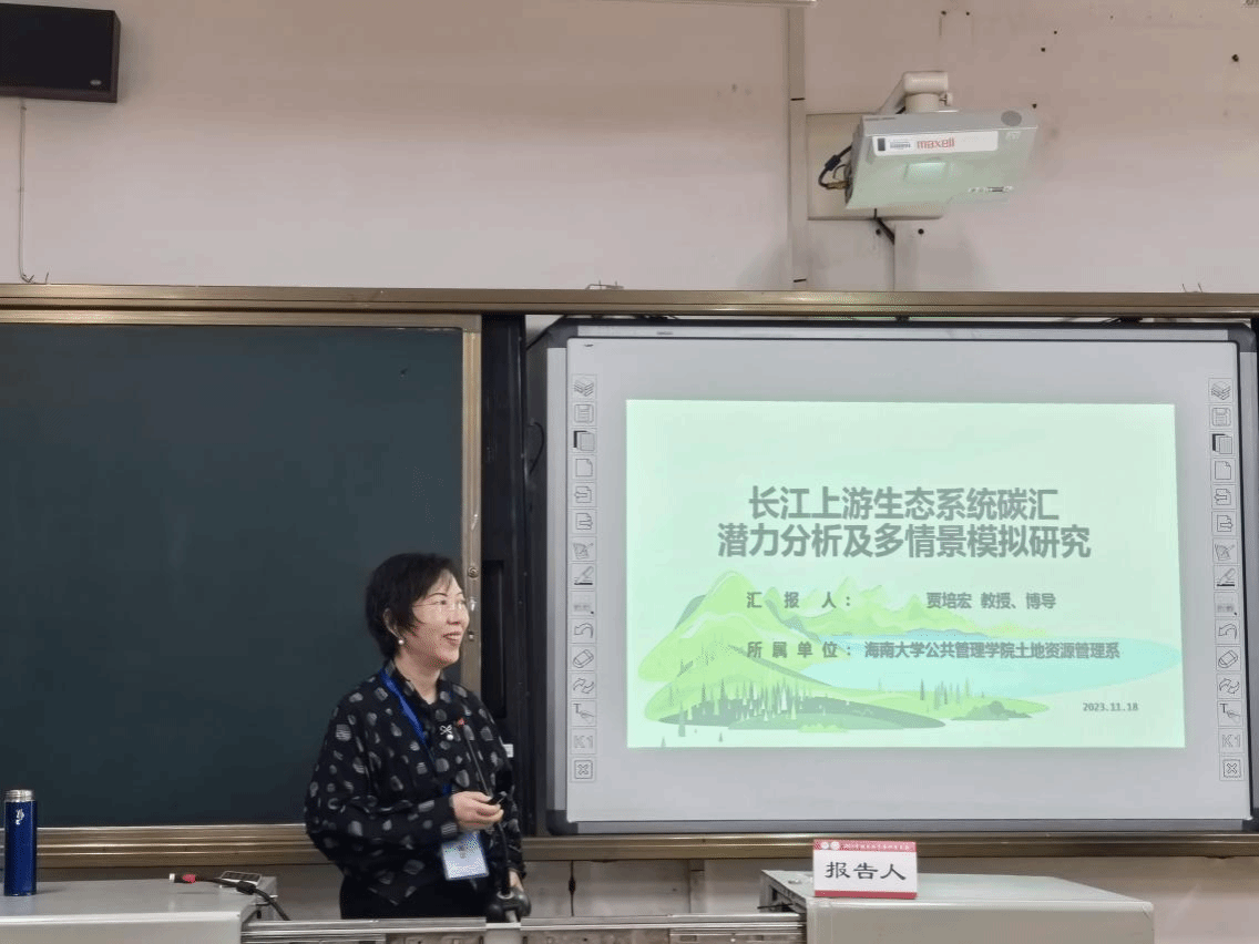 在19日的分会场主题报告中,贾培宏教授作题为“长江上游生态系统碳汇潜力分析及多情景模拟研究”的学术报告,详细报告了其团队以3S技术为基础耦合InVEST与PLUS模型,以格网为评估单元挖掘1990-2020年间土地覆被转化的碳汇效应演化规律,在综合考虑气候-土地利用景观-社会经济等因素影响下模拟不同情景2035年土地覆被及碳储量状况。博士生朱雨芯作了题为“长江上游地区生境质量时空演变及其驱动机制研究”的学术报告。硕士生刘阳、陈静、梁传卓分别作了题为“海南热带雨林国家公园生态空间保护格局研究”“三江源国家公园生态产品价值核算及其实现路径研究”以及“基于LDA模型的中国长江上游环境保护政策关注度配置分析”的学术报告。其中,我院二年级硕士研究生陈静获本届大会优秀论文奖。