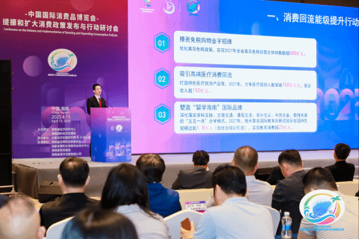 4月15日,第五届中国国际消费品博览会举办期间,由海南省经济研究中心和海南国际经济发展局联合主办的“提振和扩大消费政策发布与行动研讨会”在海口市喜来登酒店顺利召开。
