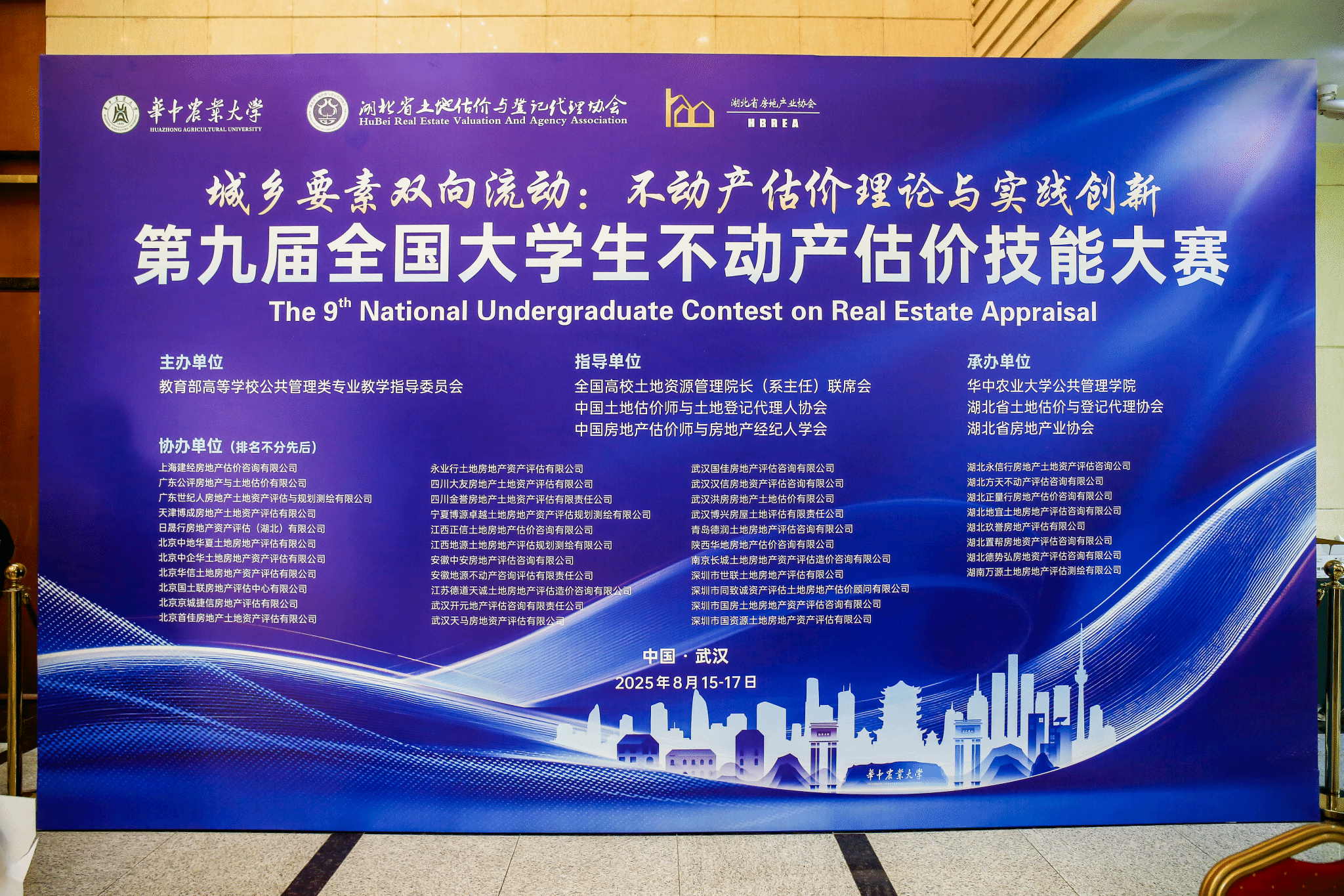 2025年8月15日至17日,由教育部高等学校公共管理类专业教学指导委员会主办,全国高校土地资源管理院长(系主任)联席会、中国土地估价师与土地登记代理人协会、中国房地产估价师与房地产经纪人学会指导,华中农业大学公共管理学院、湖北省土地估价与登记代理协会、湖北省房地产协会承办,41家行业机构协办的第九届全国大学生不动产估价技能大赛(决赛)在华中农业大学成功举办。本届大赛吸引了全国众多高校参与,经过专家匿名通讯评审与会议评审,最终60支优秀队伍脱颖而出,晋级决赛。