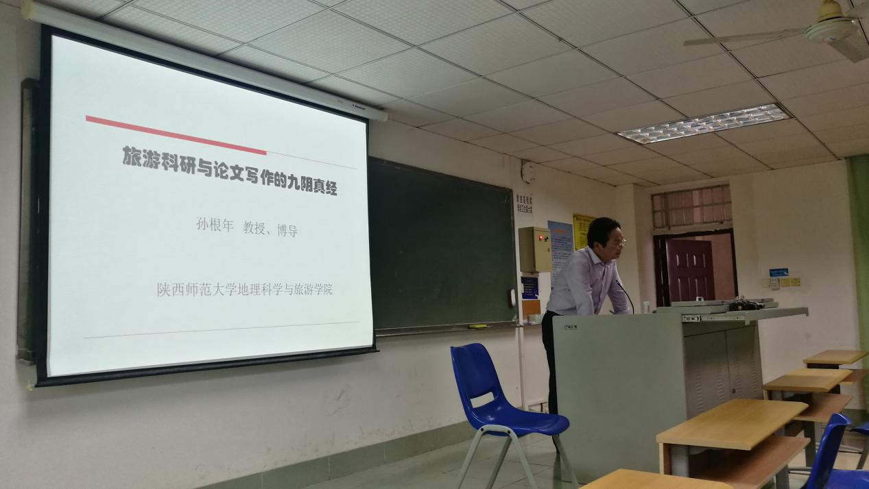 应旅游学院地理科学与规划系及MTA教育中心邀请,2019年10月31日下午,陕西师范大学地理科学与旅游学院博士生导师孙根年教授为我院教师与研究生作了题为“旅游科研与论文写作的九阴真经”的学术报告,我院教师、及博士与硕士研究生共计40余人参加了此次学术交流活动。