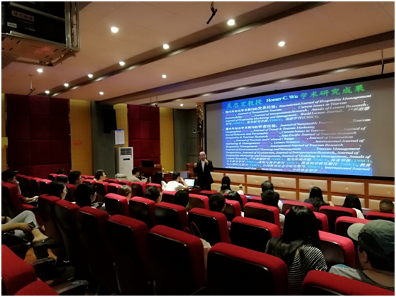 2018年6月4日上午,台湾旅游界与环境教育界知名学者吴忠宏教授应邀来402永利集团官网入口为旅游学院师生开展专题讲座,此次讲座在旅游学院9教3D实验室举行,由旅游学院副院长胡涛教授主持,主要参加人员有旅游学院教师和各年级研究生。