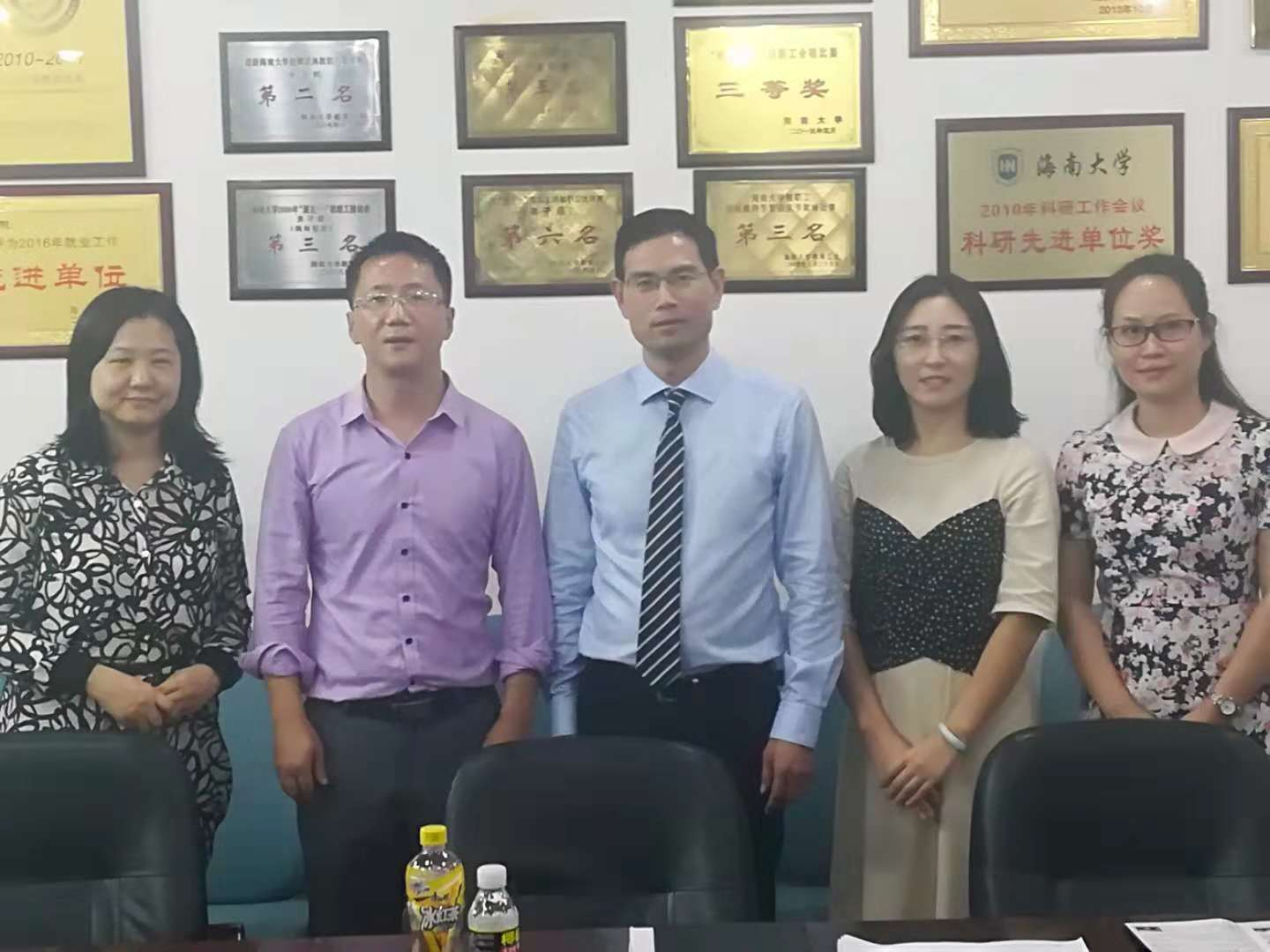 与来访客人合影留念
