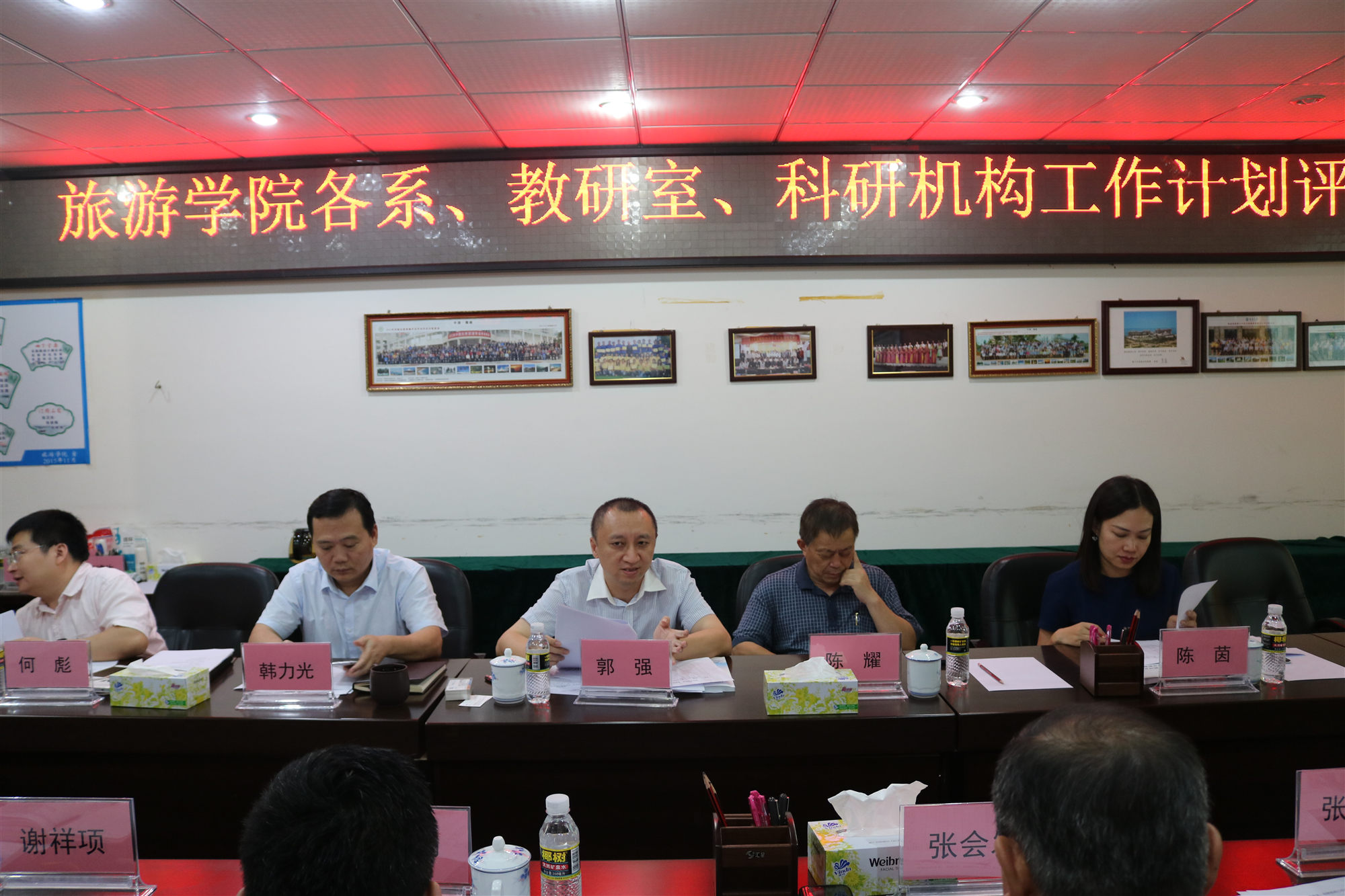 为促进学院学科建设发展,通过借助外力,听取社会各方意见,创新工作方法,2019年4月30日下午,旅游学院召开各系、教研室、科研机构工作计划评审会。旅游学院院长郭强、党委副书记(主持工作)韩力光,副院长王永强、何彪(挂职)、谢祥项(挂职)、侯佩旭(挂职),以及各系、教研室、科研机构负责人出席了工作计划评审会会议。