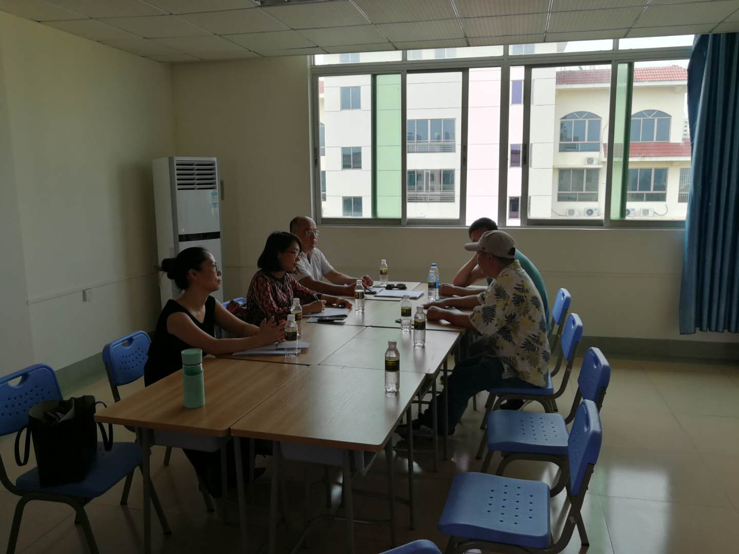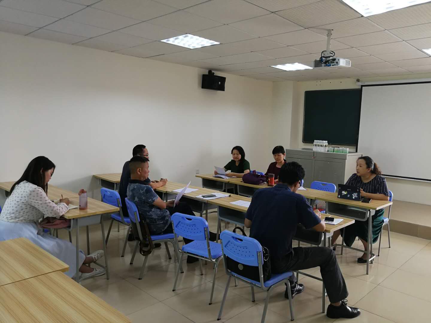 在会议第二阶段,全体教师移步至8号教学楼教师,进行平行讨论,学院全体与会教职工根据会议议程安排,分8个小组就学院“办学定位、发展目标、院训、院风”、“各专业发展现状、建设规划、培养方案课程设置”、“学院本科教学工作审核评估整改方案”、“教学系及教研团队的设置”、“学院实习实践教学工作、实验室管理与利用、双创教育课程”、“学院学风、教风建设工作”等议题进行了分组讨论。与会教师积极参与研讨,踊跃发言,气氛非常热烈,会议一直持续到下午6点,韦开蕾院长、房云昆书记、何彪副院长等参与了部分小组讨论。