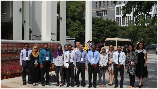 座谈会结束后,海大国际处外事科田凌溪老师、旅游学院国际合作交流办公室主任周红霞和陈小莉老师陪同马尔代夫代表前往国际旅游学院参观。