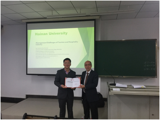 2019年1月6日-1月10日,马来西亚南方大学学院副校长陈秀林教授应邀来我院,为2017级酒店管理专业的本科生开展冬季小学期授课。授课开始前,旅游学院副院长王永强亲临教室,对陈秀林教授的到来表示热烈欢迎,并举行了简短的聘任仪式。