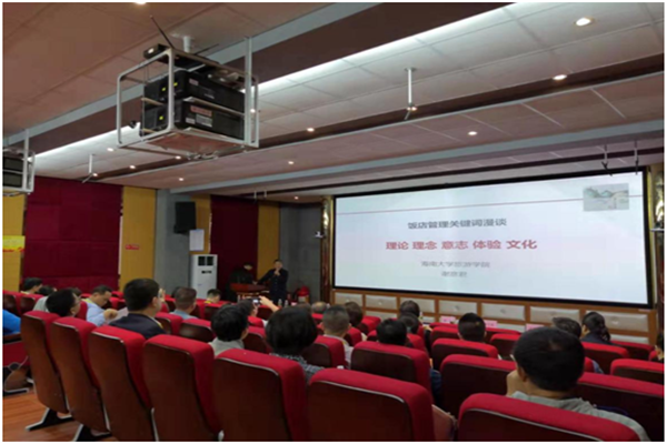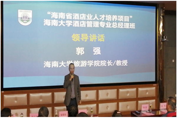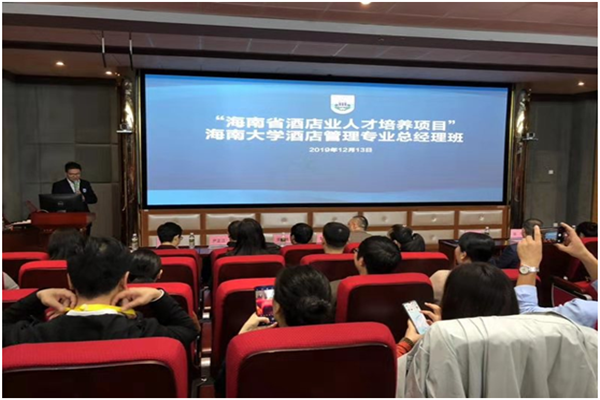 2019年12月13日下午3点整,“海南省酒店业人才培养项目”402永利集团官网入口酒店管理专业总经理班开班典礼在402永利集团官网入口旅游学院9号教学楼3D实验室隆重举行。出席本次开班典礼的嘉宾有海南省教育厅高教处副处长苏永光先生、海南省旅游饭店协会会长张会发先生、海南省旅游和文化体育厅人才培训处干部田萍女士、海南省旅游饭店协会副秘书长、海口酒店协会秘书长王德余先生、402永利集团官网入口旅游学院院长郭强教授、402永利集团官网入口继续教育副院长李玉凤教授、402永利集团官网入口旅游学院副院长何彪副教授、侯佩旭副教授以及402永利集团官网入口旅游学院各系主任、学科带头人等多名教师。本次酒店管理专业总经理班全体学员参与了开班仪式,开班仪式由402永利集团官网入口旅游学院副院长谢祥项博士主持。本次活动分为开班典礼、培养座谈会、专题讲座三个环节。