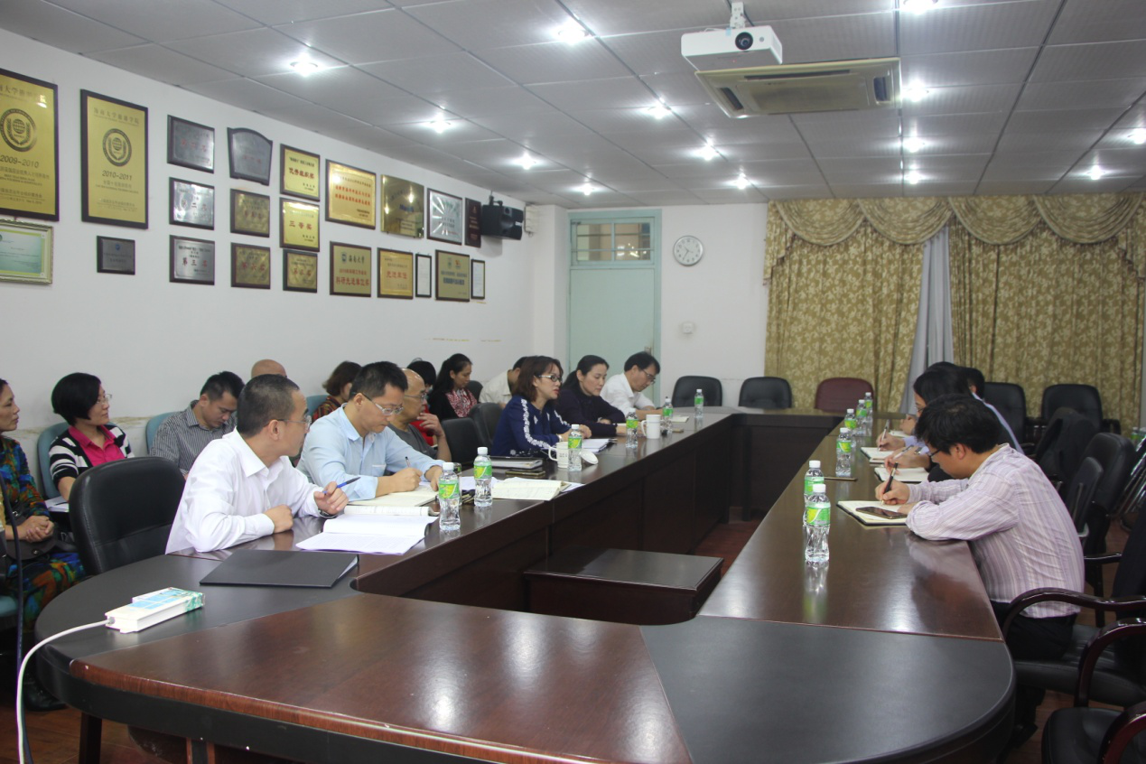 韦开蕾院长和韩淑梅书记首先就学院教学、科研、研究生工作、实践基地建设、师资队伍、党建工作等方面先后向刁晓平副校长一行做了全面汇报。在听取了其他院领导和部分教师代表的发言后,人事处处长段书臣、重点项目建设办公室主任廖双泉、研究生处副处长阎二鹏分别就人才引进、学科建设、研究生培养等工作提出了指导性的意见。
