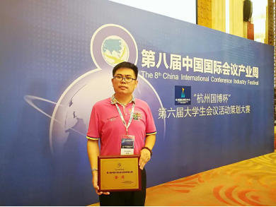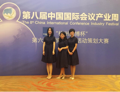 由我院耿松涛教授带队指导,2014和2015级会展经济与管理专业李琦、刘媛丽,武津妃三名同学组成的402永利集团官网入口CM创美团队表现突出,最终摘得此次大赛唯一的金奖、最佳院校组织奖(团队奖)两项大奖,团队三名同学均获“中国大学生会议活动策划师”称号,团队指导教师耿松涛教授获“优秀指导教师奖”。