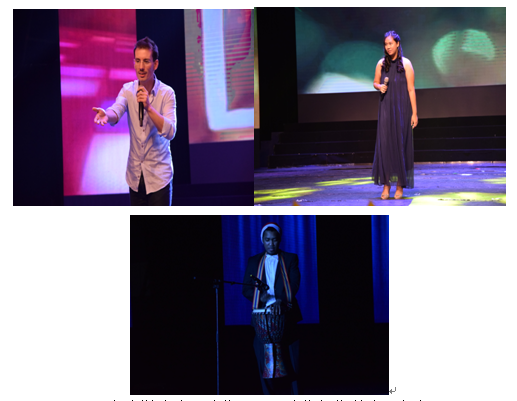 整场晚会节目丰富多彩,歌舞、话剧、杂技等精彩的节目应有尽有,晚会涉及中、英、日、韩、印尼、丹麦、法国和非洲等各国各地的特色文化。2012级应用日语班表演的“经典日本动漫主题曲串烧”让多少动漫爱好者重温了记忆中美妙的音符;2013级应用英语和2012级应用英语班表演的劲爆热辣的韩流舞蹈,变幻的风格,绚丽的舞步,赢得了台下观众的阵阵尖叫和掌声;2014级应用英语班青春活力又搞笑的英语话剧《Turkey’s here》和《Make me feel your love》,生动夸张的表演爆笑全场,整个话剧从编剧、台词、旁白以及音视频效果全部是由同学们独立完成的,各环节融为一体,精彩纷呈,充分展现了同学们多才多艺、创新性和扎实的语言功底。