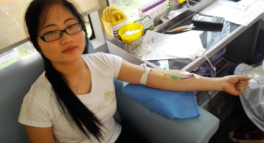 下午3点,参与无偿献血工作的医护人员和志愿者们在旅游学院食堂旁做好了相关准备。献血活动开始后,在医务人员的引导下,同学们们积极配合,严格遵守献血秩序,认真完成填表、体检、验血、抽血等程序。献血车里面暖意融融,气氛轻松欢畅,一张张熟悉的明媚的笑脸上充满着自信,他们当中既有第一次献血的同学,也有连续数次献血的同学,虽然他们的专业、年龄各有不同,在献血的话题上却都滔滔不绝。献血有量,爱心无限,个别同学参与无偿献血热情高涨,却因为不符合献血条件失望而归。现场的志愿者对献血的同学们随机进行采访,其中第一次参与无偿献血的13级唐琪同学显得非常激动,她说:“这是我第一次献血,虽然很紧张,但是感觉非常有意义。对我而言这可能只是两百毫升血,但是对别人而言可能就是挽救了一个生命。”另一位已经参与了7次无偿献血活动且连续三年被评为“献血先进个人”的11级李子文同学热情洋溢的跟志愿者们分享了献血的感受,他说:“其实献血并不像网上传言的那样可怕,定期献血不仅可以帮助到别人,更对自己的身体健康有好处,希望大家能够积极参与到无偿献血活动中,帮助更多需要的人。”