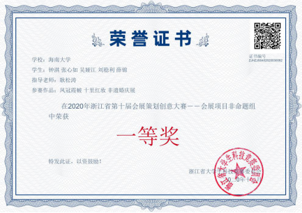 由我院耿松涛教授指导,2018级会展经济与管理专业钟淇、张心如、吴娅江、薛锦、刘稳利5名同学组成的“深海遗珠团队”日前参加了在杭州举办的由浙江省大学生科技竞赛委员会、浙江省商务厅主办,浙江外国语学院、浙江省国际会议展览业协会共同承办的“2020年浙江省第十届会展策划创意大赛”。