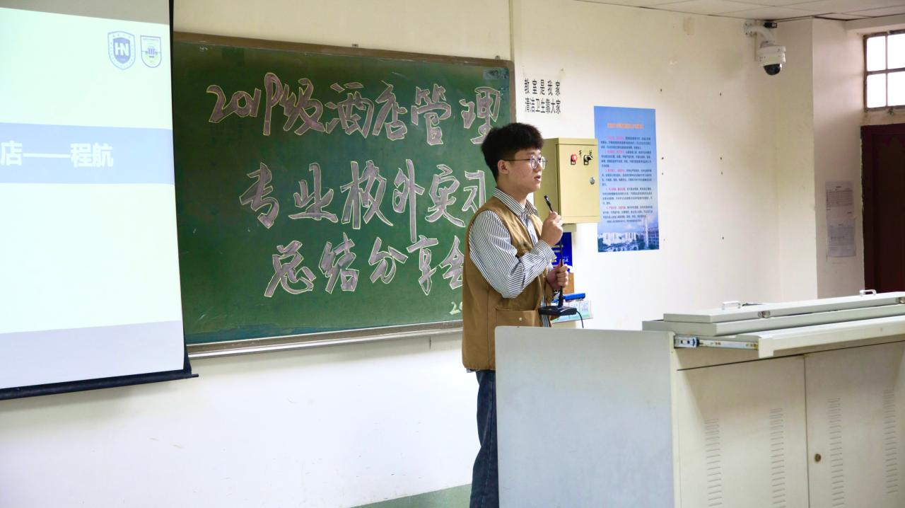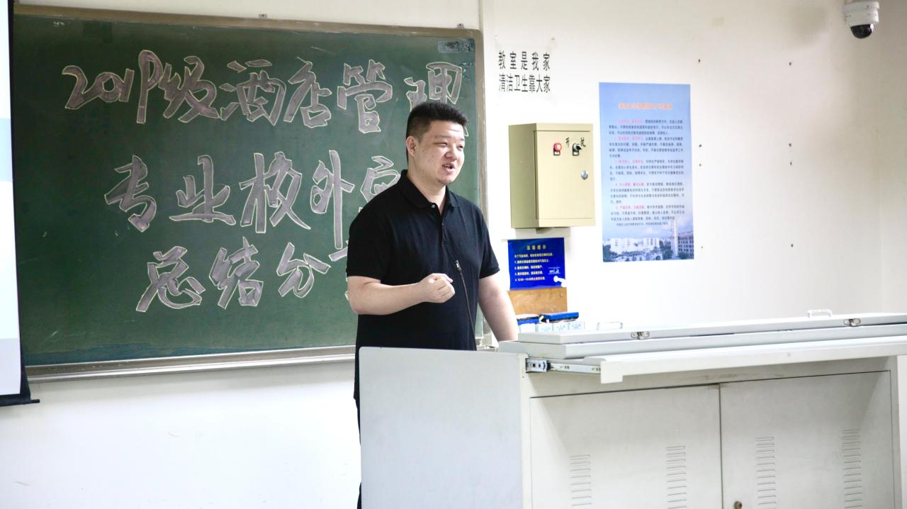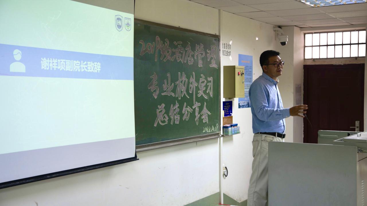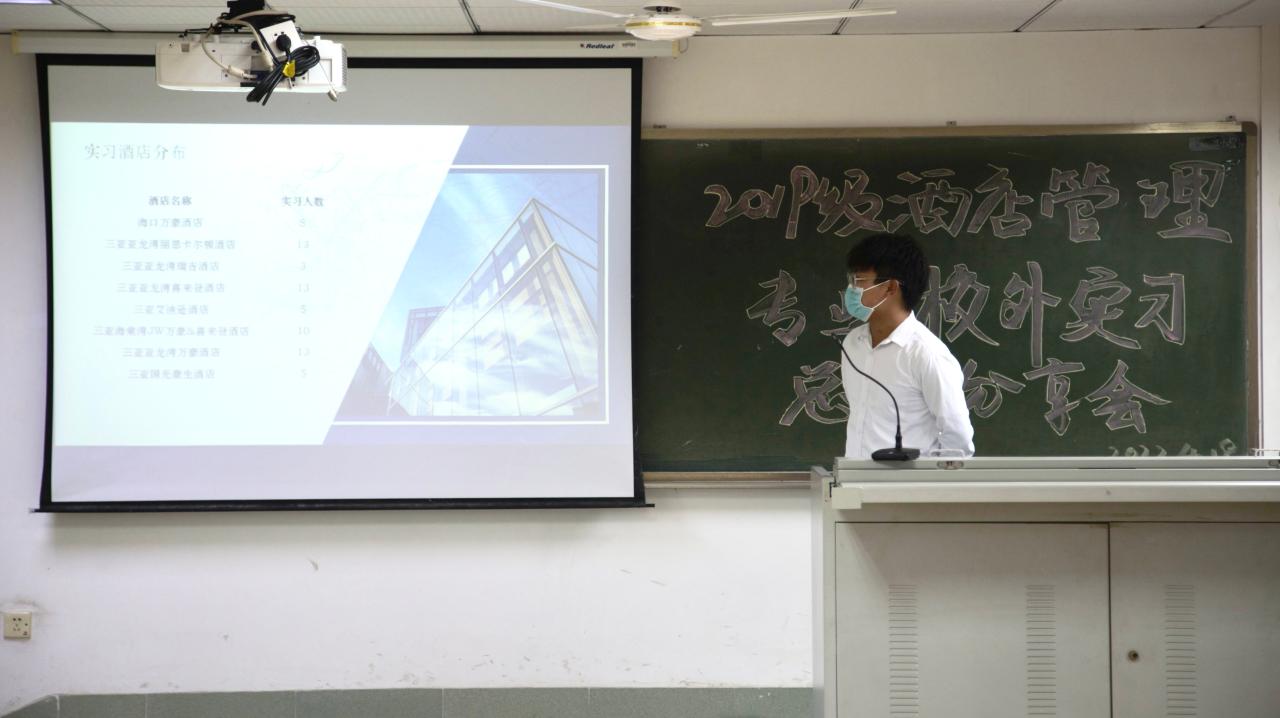 2021年4月19日下午,由402永利集团官网入口旅游学院酒店管理系2019级师生筹办的校外专业实习分享会在8教404教室举行。出席本次实习分享会的师生有旅游学院党委书记韩力光老师,副院长谢祥项老师,酒店管理系系主任刘雪莲老师,杜肖寒老师,辅导员文金顺老师以及酒店管理系2019级和2020级全体同学。