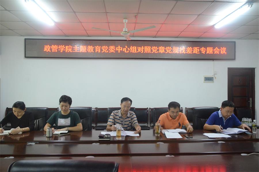 10月15日上午,政管学院党委班子召开对照党章党规找差距专题会议,党委书记王默忠主持会议,副院长李宜钊、副书记邢红斌、副院长刘德浩参加会议。